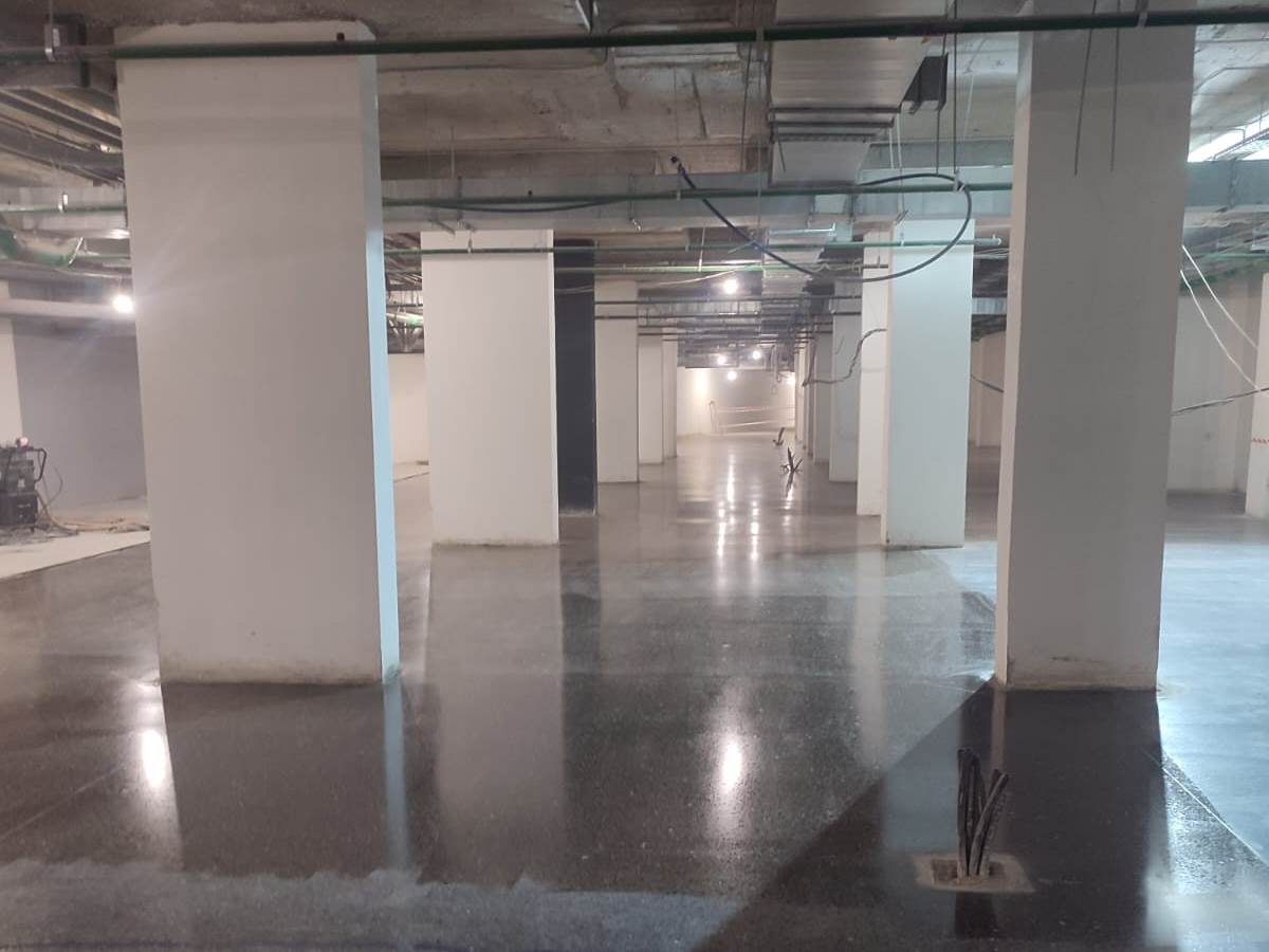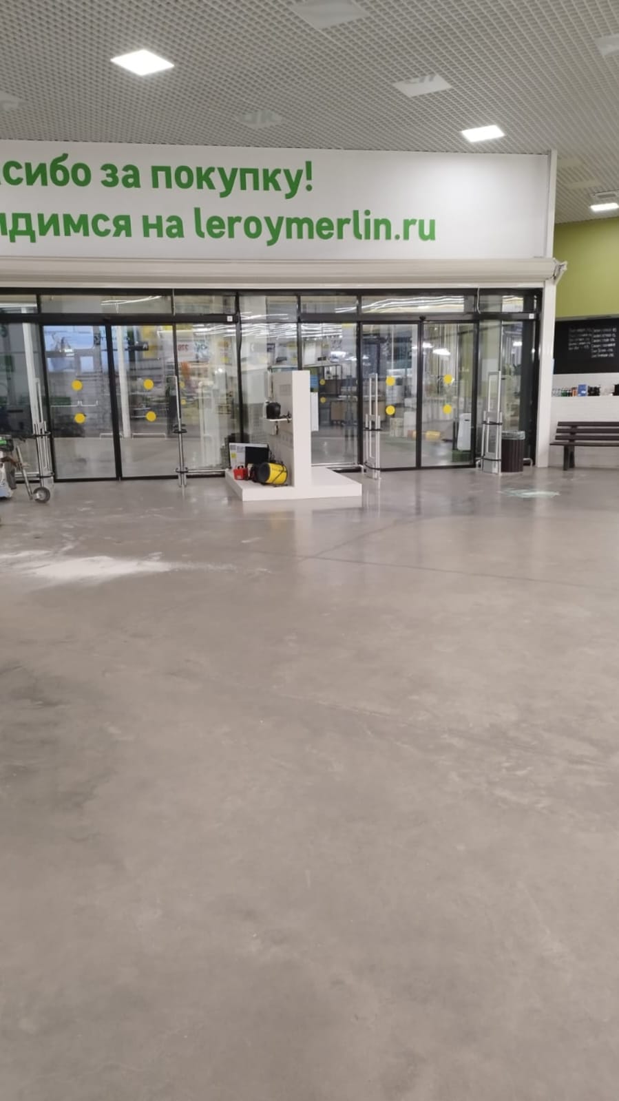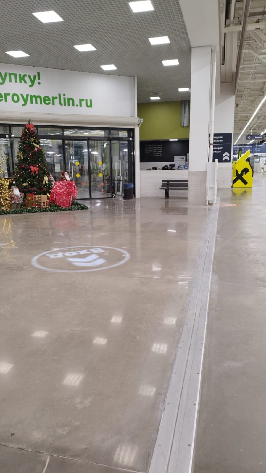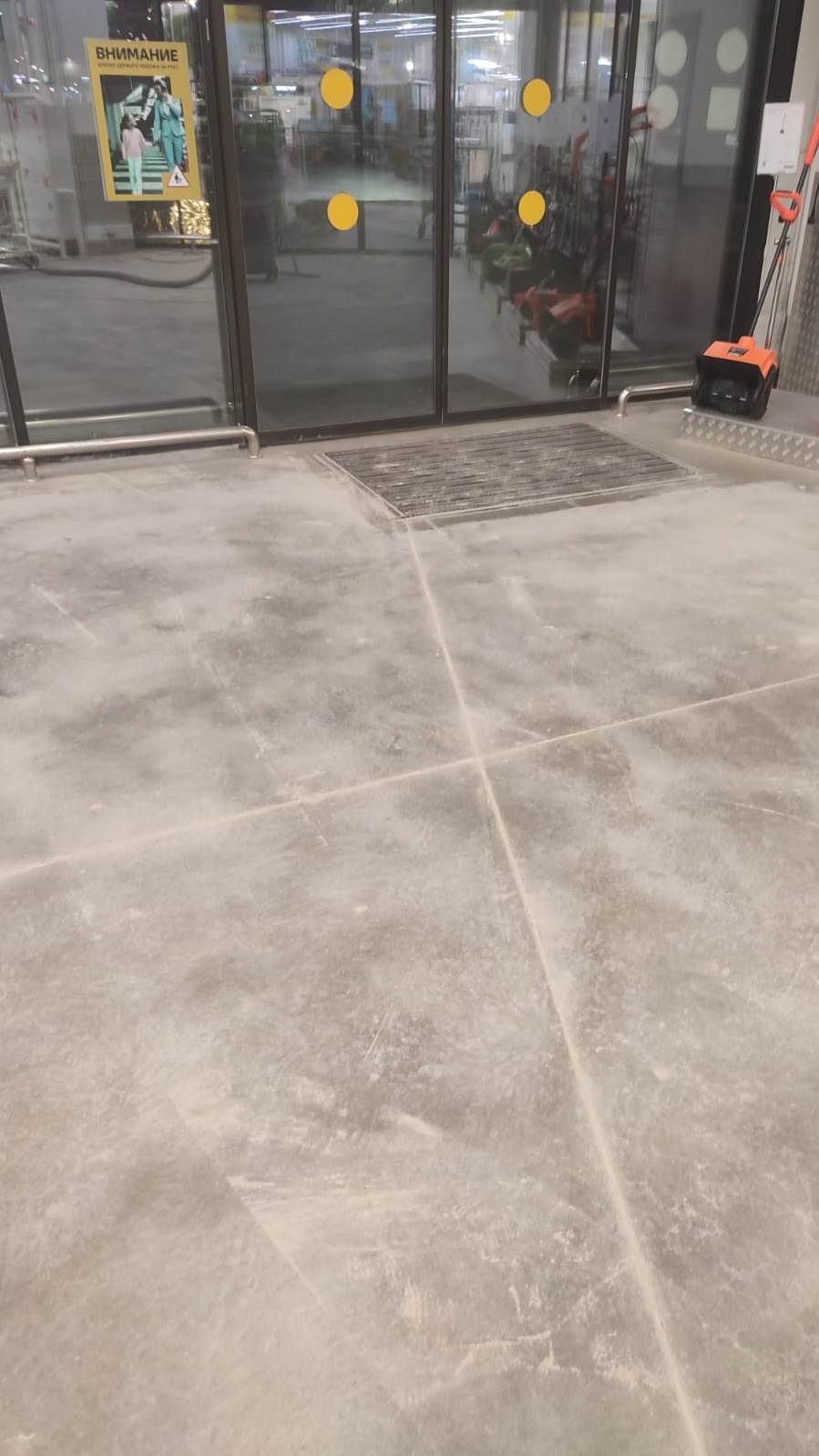 Леруа Мерлен, Выхино. Переполировка входной группы 500 м2, расшивка трещин и ремонт. Герметизация швов